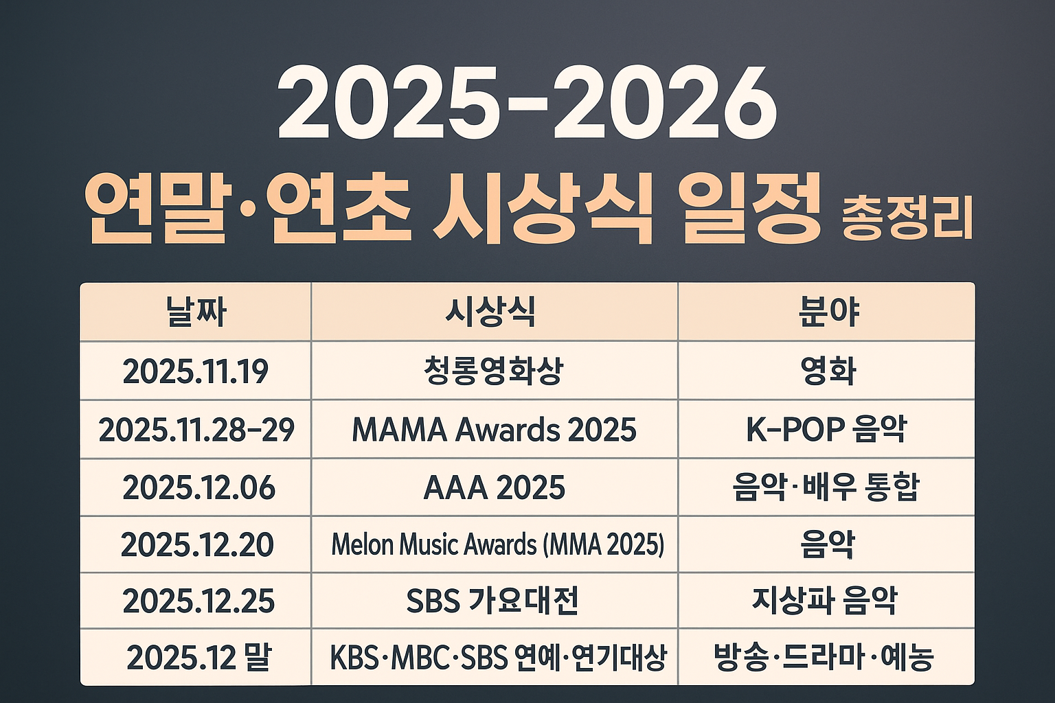 ✔ 2025–2026 연말 시상식 일정 한눈에 보기