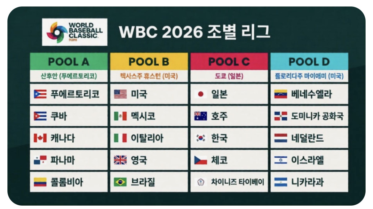 2026 WBC는 한국 야구의 세대교체 성과를 확인할 수 있는 중요한 무대입니다. 특히 일본과 같은 조에 속해 있는 만큼 조별리그 일정과 한국시간 중계 편성을 미리 확인해 두는 것이 중요합니다.